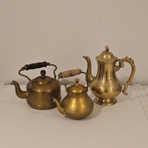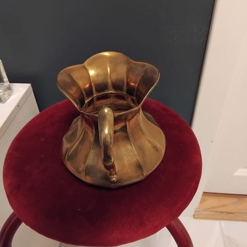Dekorativ, tung, gammel messingkanne. Til dekorativt bruk. 38 cm høy