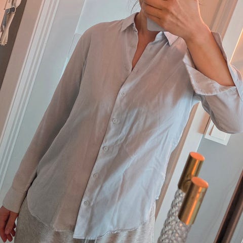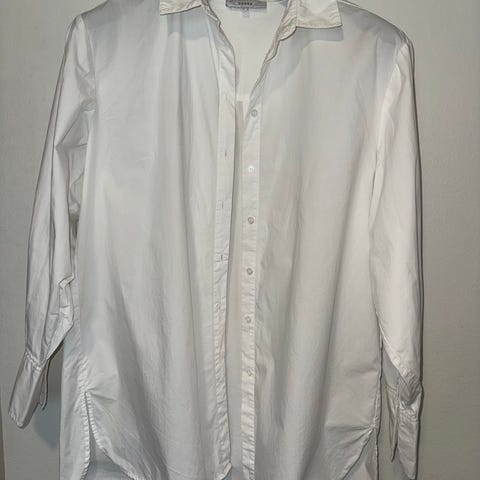 Hvit skjorte fra DONNA med strass på knappen. Nesten ny, vasket og strøket. Str S.