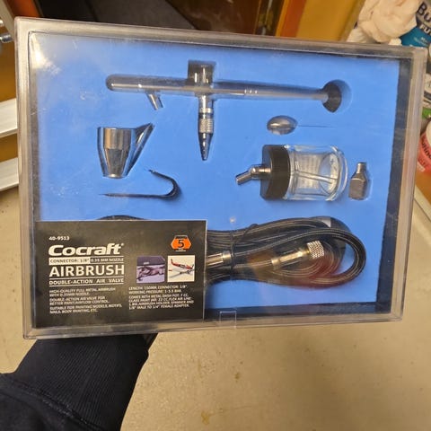 Airbrush Double Action Airbrush Sett med metallkropp og dobbel handling. Leveres i boks med skuminnlegg for oppbevaring. Egnet for presisjonsmaling og detaljarbeid.