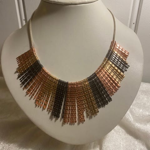 Lekkert Moon’c smykke med treperler og små sølvperler. Svart skinn med sølv rundt på ene siden. Liten slitasje på skinnet. Kan brukes på andre siden der det kun er sølv. På sidene står det inngravert «Love is all around you» to ganger.