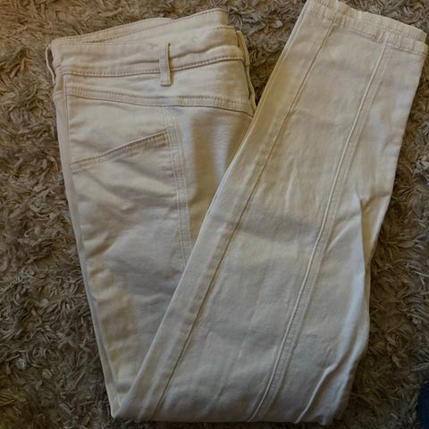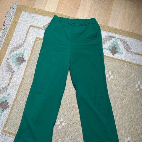 Lindex bukser i grønn farge, dame størrelse 42. Laget av et komfortabelt materiale, egnet for hverdagsbruk. Buksen har lommer bak og en avslappet passform.