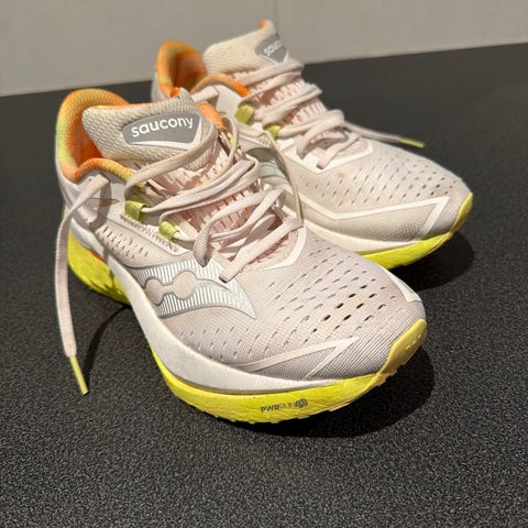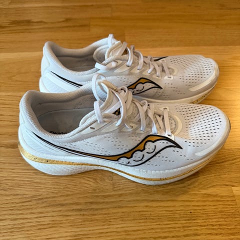 Selger et par Saucony Endorphin Speed 3, en av markedets mest populære trenings- og konkurransesko for løpere som vil ha fart og komfort i samme pakke.