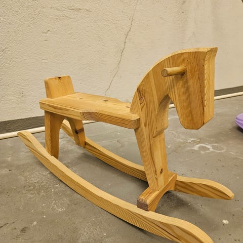 Selger en gyngehest til barn. Kun brukt som pynt.
