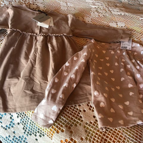 Kort topp i bomull velur i fargen “tobakk” og myke leggings. Selges sammen. Pent og lite brukt da jenta helst vil ha kjoler hver dag☺️