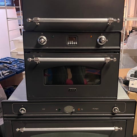 Vurderer å selge en ny La Cornue Cornufé 110 ventilator i klassisk sort med detaljer i rustfritt stål og polert messing, istedenfor å returnere.