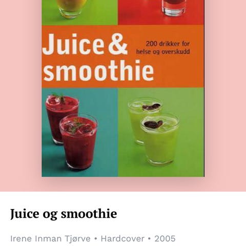 Oppskrifter på mange deilige smoothies og juice! Omslaget ser godt brukt ut, men innsiden er så god som ny☺️