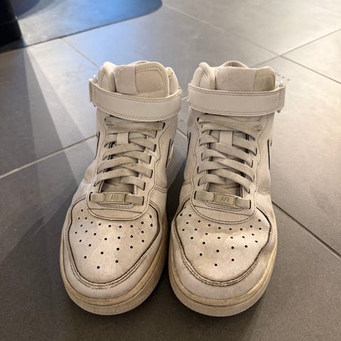 Nike unisex barnesko i størrelse 34. Skoene er hvite og laget av syntetisk materiale med gummisåle. De har borrelåsfeste