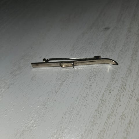 Den ene er sølvfarget med en bil og den andre er gullfarget mere enkel. Usikker på materiale.