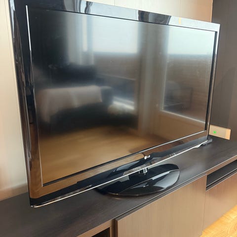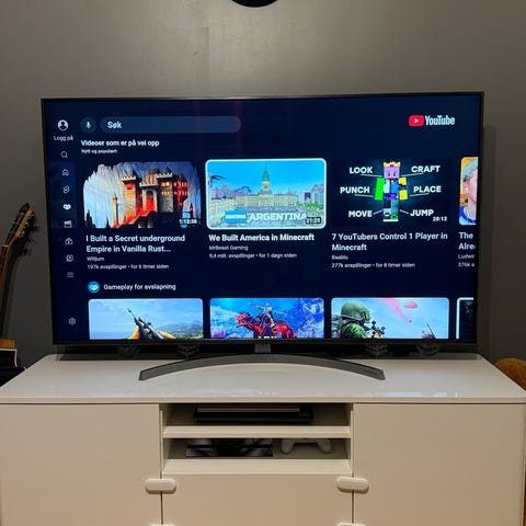 LG Smart TV. TV-en har flere tilkoblingsmuligheter på baksiden, inkludert HDMI og USB-porter.