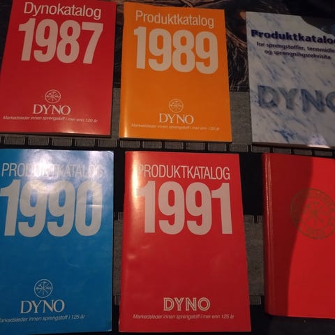 Selger en pen innbundet bok med tittelen: "DYNO INDUSTRIER AS - Sprengstoffer - Sprengningsteknikk".