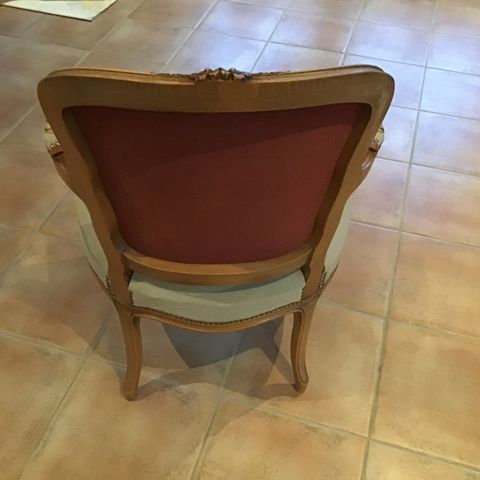 1 stk rokokkostol , litt slitt i treverket, en rimeligere utgave kr 250