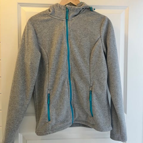 Fleecegenser for kvinner i størrelse XL. Genseren er hvit med detaljer i lys lilla. Materialet er fleece, egnet for ulike aktiviteter innen sportstype Annet.
