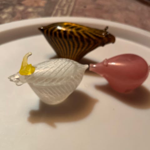 Kunstglass hane figur , mål på bilde. 650kr . Svane , mål på bilde. 150kr. Eller 700kr samlet. Begge er hele og fine.