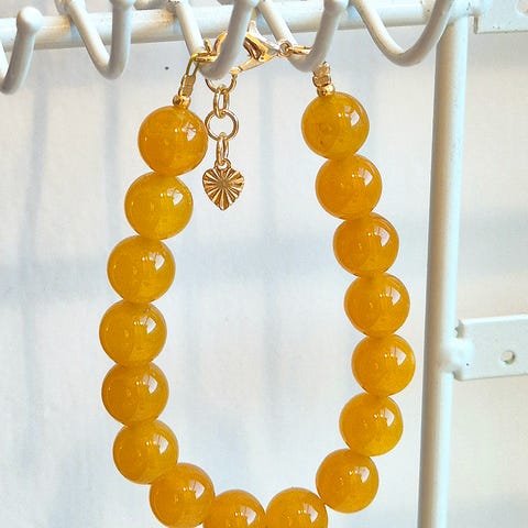 Nydelige perler av naturstein / jade i gule perler.