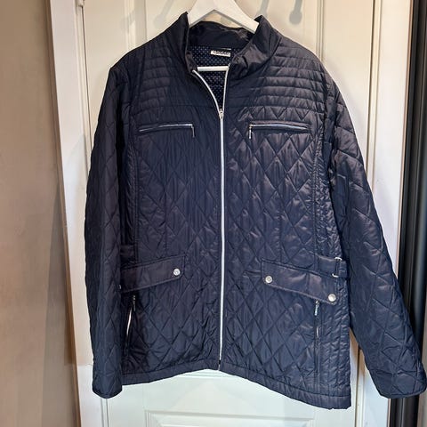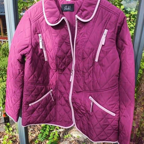 Stockholm quiltet jakke i beige farge, dame størrelse 38. Jakken har knappelukking foran og er designet med et rutemønster i stoffet. Materialet gir en lett isolasjon og egner seg til bruk som ytterplagg i mildt vær.