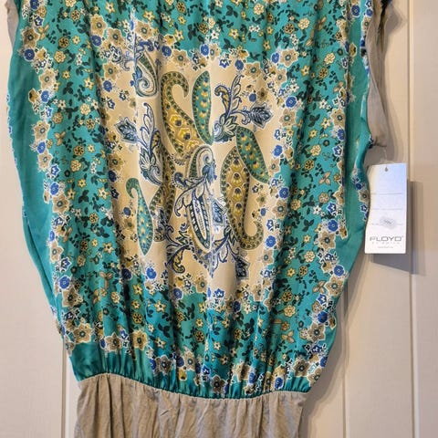 Floyd Andre topper i størrelse XL for kvinner. Toppen er gul i fargen og har en løs passform med plisserte detaljer foran. Materialet er lett og egnet for varme dager eller lag-på-lag bruk.