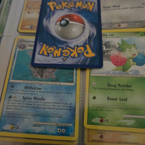 Pokémon Trading Cards inkludert Seedot og Growlithe grunnkort, samt Mega Evolution og EX.