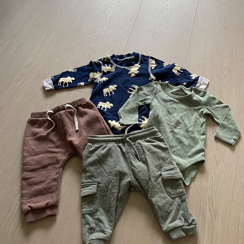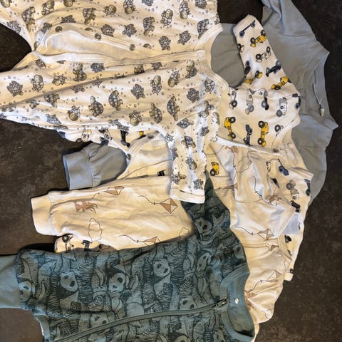 Selger ullpakke. 9 bodyer, 4 bukser og 1 pysj.