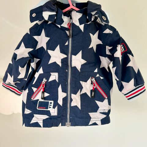 Reflex Jakke for barn i størrelse 122. Jakken har flerfarget design med stjernemønster, og er egnet for både gutter og jenter. Jakken har hette som kan enkelt tas av og på 😊