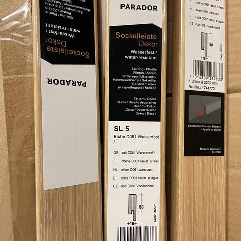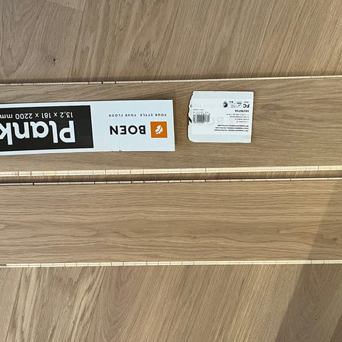 Ønsker å selge 20stk lister på 2,2m hver (44m totalt) fra Skau. Vi kjøpte dessverre feil høyde og får ikke returnert dem. Listene er 40mm høye og ubrukte. Tar gjerne i mot bud. Sitter også på en del pakker med korkvinyl gulv uåpnet i samme farge dersom det er ønskelig å kjøpe som en pakke. Kjøpte også her overflødig mye og får dessverre ikke levert tilbake. Må hentes.