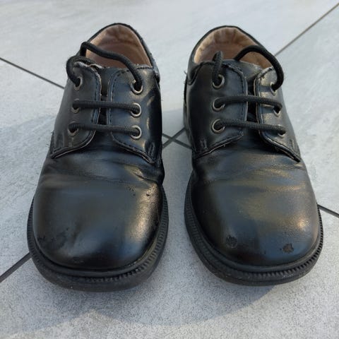 Skofus barn sko for gutt i størrelse 26. Skoene er svarte og laget av materiale som gir en glatt overflate. De har snøring foran for justering og god passform. Skoene er egnet for barn og kan brukes til ulike anledninger. Ene skoen flasser litt på innsiden selv om sko aldri har vært brukt. (se eget bilde).