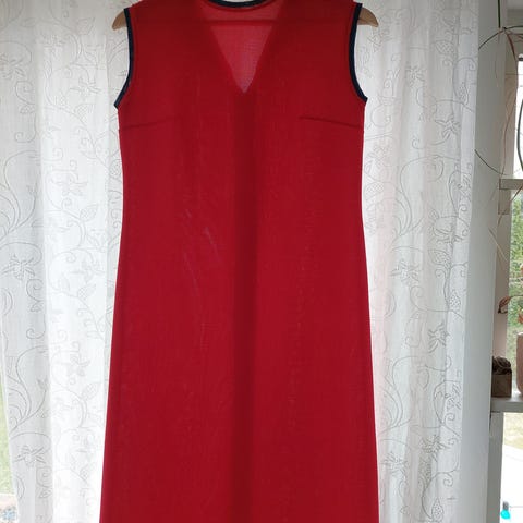 Nydelig rød kjole, slank fasong med folder i siden slik at den sitter veldig pent.