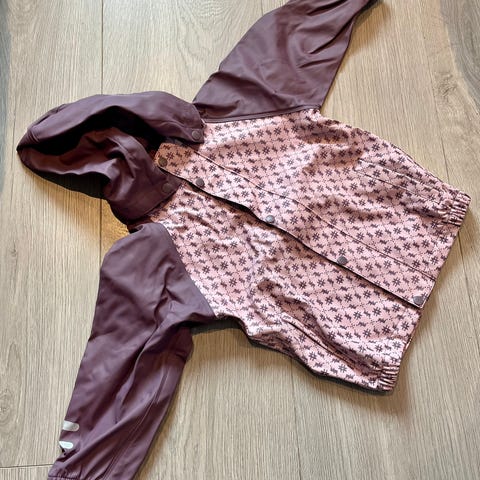 CeLaVi regntøy str 90 selges da de har blitt for liten. Nydelige og gode regnklær med flis kant og glidelås. Ingen synlige bruksmerker, kun to små hull ved selene på buksa. Se bilde.