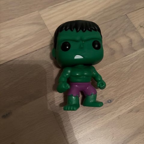 Myk, klembar figur av Hulk i kawaii-stil – ca. 6 cm høy. Perfekt som skrivebordsdekorasjon eller antistress-figur. Ubrukt og fortsatt i original plastpose.