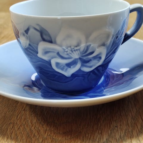 Moccakopper med fat. Julerose fra B&G. 12stk selges samlet. Pent brukt. Se bilder for mål. Må hentes.