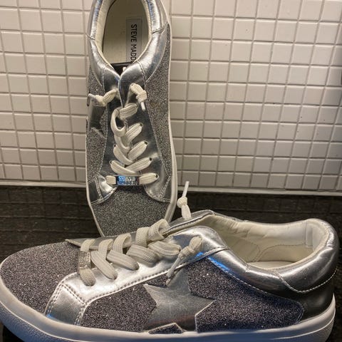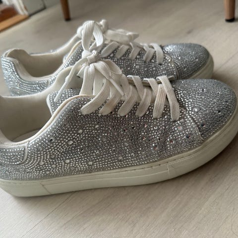Kuleste skoene med masse bling og liten platå i str 35 selges. Passer 35. Helt råe sko. De er gode å gå i og brukt en gang. Kan brukes av jente, barn eller dame. De ble dessverre marginalt for korte til meg i lengden.