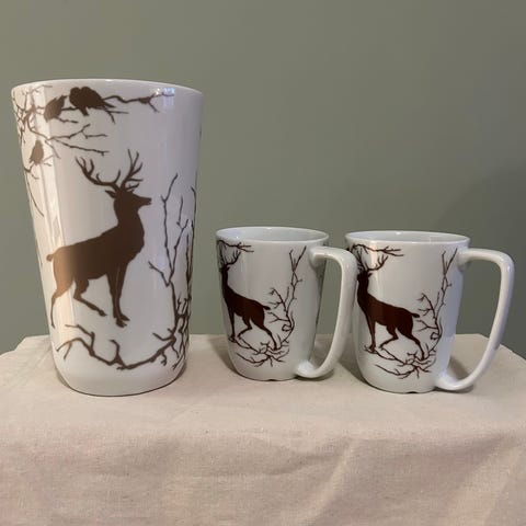 Har du behov for å supplerer ditt Alveskog servise? Jeg selger tre flotte kopper (20cl) og fire skåler til kr 135/sett. Den fjerde skålen får du med på kjøpet 😊. De har nesten ikke vært i bruk og er uten riper, sår og hakk.