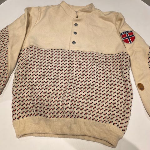 Pent brukt (se bildene og forstørr) ullgenser i størrelse M selges for 175kr.
