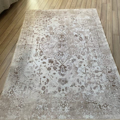 Teppe med målene 140x197 cm i grå og hvit farge. Teppe med tett, flettet tekstur og flat kant. Passer til bruk i soverom, stue eller andre rom som gulvteppe.