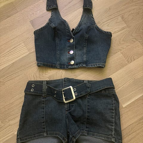 Helt by jeans kjole selges. Størrelse L. Skuldre: 29cm, Lengde: 80.5cm, Byste: 102cm, Liv: 82cm.