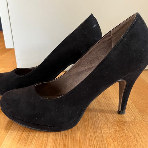 Michael Kors Collection Leandra plattformhæler i luksuriøst svart semsket skinn med gullfargede detaljer.