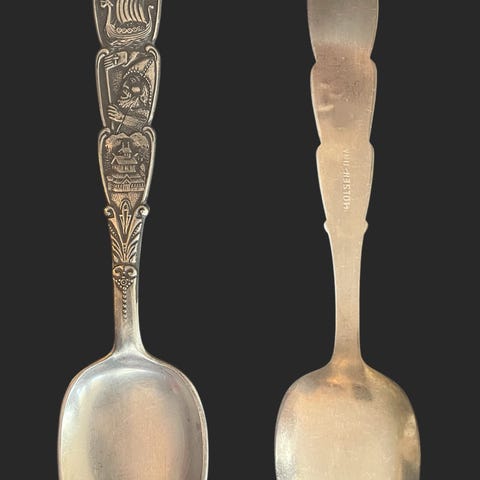 pent brukte stor og liten Gullsmed Holsen tinn skje