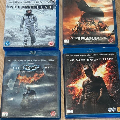 Bare The Dark Knight og Interstellar som har blitt sett én gang hver. Har stått urørt på hylla siste året.