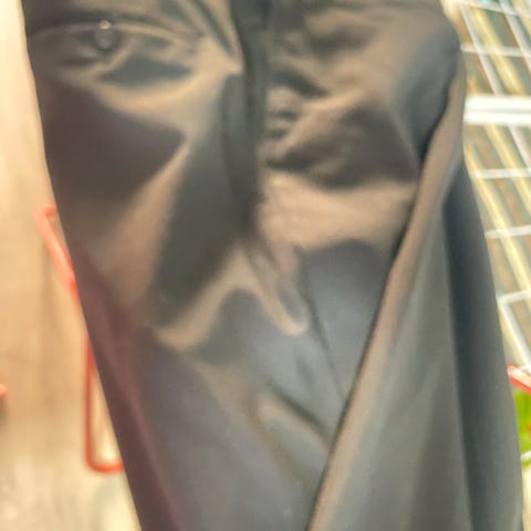 Stødig bukse med oppbrett i 45%ull/55% polyester selges. Fargen på bildet misvisende. Den er helt svart.