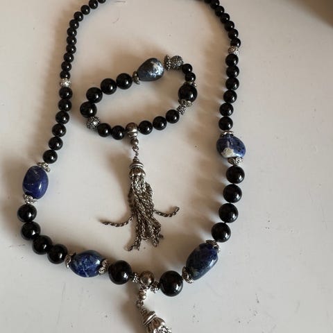 Lekkert sett med armbånd og perlekjede i fin turkis farge.