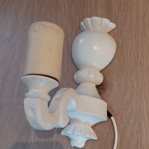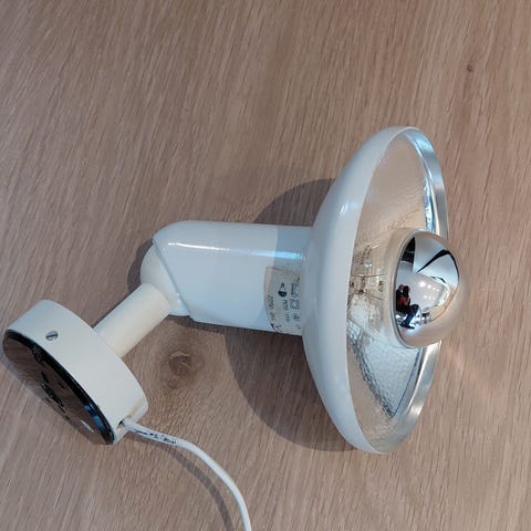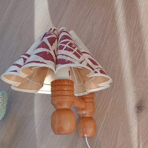 Fin retro vegglampe selges. Lampe med skjerm er ca 22 cm høy. Ledningen har bryter. Lyspære medfølger, men jeg vet ikke om den fungerer fremdeles.