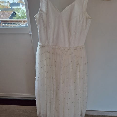 Kjolen er sydd i chiffon med brodert prinsesseliv.