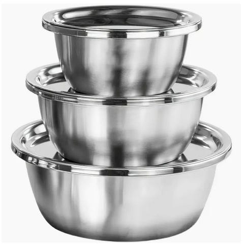 Sett bolle rund 1 skål + 1 lokk rustfritt stål