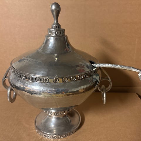 Suppeterrin/ Punsjbolle med lokk og fat under i samme stil
