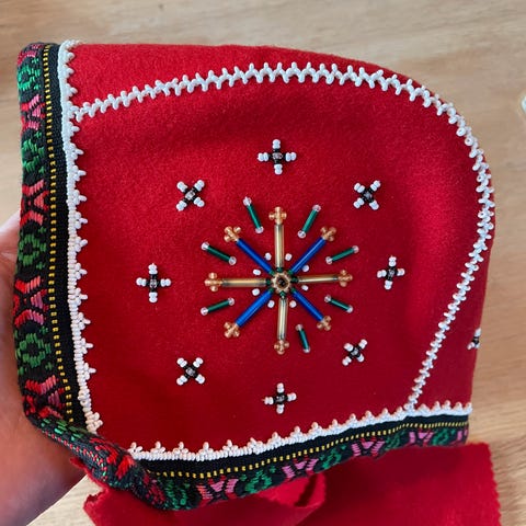Bringeduk, belte, forkle og veske til Hardangerbunad