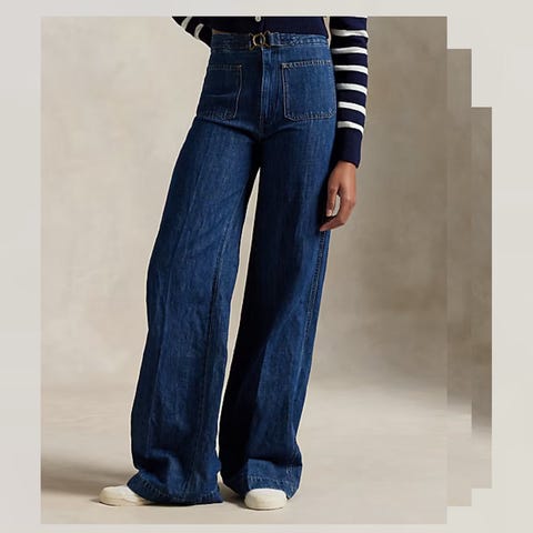 Polo Ralph Lauren Cropped Wide jeans i blå farge. Størrelse 4 (amerikansk) med midjevidde. Laget av denim/bomull (100%).