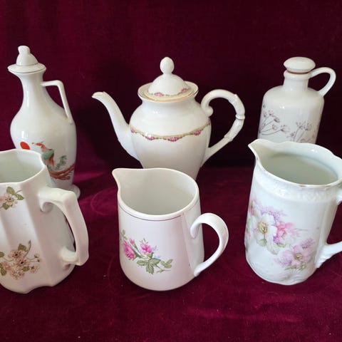 8 PP antikk og gamle kanner og mugger, i flott stand, selges helst sammen.