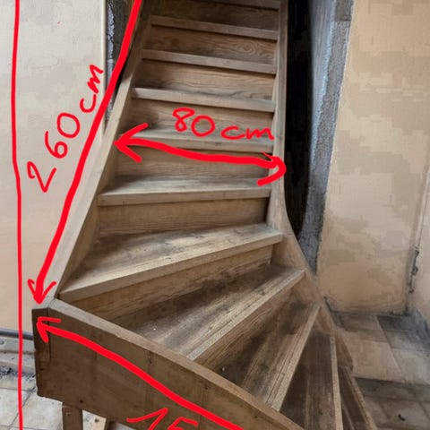 Pen trapp i furu bygget av en god snekker med lang erfaring. Den er veldig solid og godt bygget. Ubehandlet furu som kan males eller lakkes, eller brukes ubehandlet. Vridningen er elegant og snekkern har tatt inspirasjon fra japansk arkitektur. Selges grunnet ombygging.