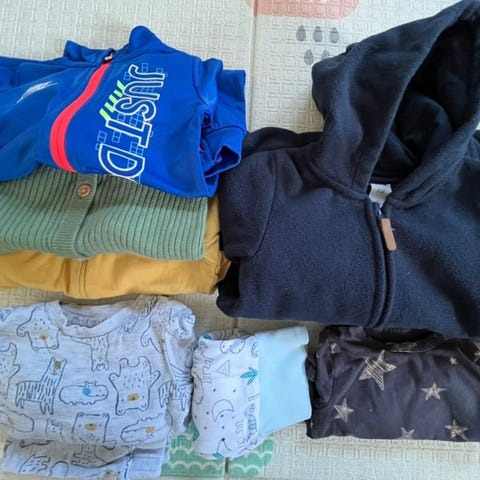 H&M barneklær for gutt i størrelse 62. Inkluderer flere bodyer og kortermede drakter i flerfarget design. Materialet er mykt og egnet for små barn. Mesteparten er bare vasket og aldri brukt da mini vokste fort