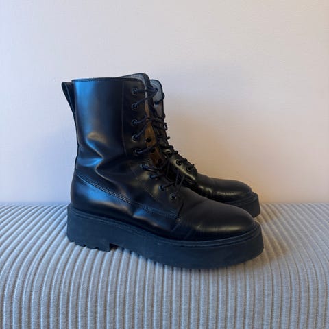 Bootsene er kun brukt/prøvd én gang, så de fremstår som nesten nye – se bilder av såle og hæl.