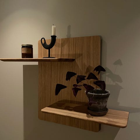 Quadro 2 hylle fra Bolia i svartbeiset oljet eik. Nypris 10 559 kr.